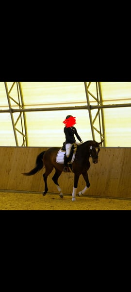 Na sprzedaż wystawiam moją 8-letnią klacz Be Happy o wierzchowcowym wzroście około 1,64 m. Zachwyca doskonałymi podstawowymi chodem i dużym wyrazem. Obecnie ponownie jest w treningu rozwojowym. Be Happy została już pod siodłem i w 2022 roku zdała próbę ujeżdżeniową dla klaczy, jednak dotąd nie brała udziału w zawodach i nie posiada żadnych miejsc. Z radością i talentem skacze przez przeszkody. Pod siodłem jest obecnie trenowana niewiele, dlatego czasami może się bardzo łatwo rozpraszać. Potrzebuje spokojnego, konsekwentnego i doświadczonego jeźdźca, który zapewni jej poczucie bezpieczeństwa i jasno wyznaczy struktury. W pracy w ręku jest bardzo zmotywowana, uważnie współpracuje i szybko uczy się nowych ćwiczeń. W terenie jest jeszcze nieco płochliwa z powodu braku doświadczenia. W kontaktach ogólnie jest grzeczna, jednak lubi sprawdzać swoje granice – nie jest więc odpowiednia dla początkujących ani dzieci. Załadunek na trailer bez problemu, jeśli jest karmiona. Zdrowie: Be Happy została pozytywnie przebadana na PSSM 2 px. Przy odpowiednim zarządzaniu dietą radzi sobie dobrze. Od czasu do czasu odczuwa napięcia w grzbiecie, szczególnie przy chłodnej pogodzie. Hodowla: Nie może stać z lub bezpośrednio obok wałacha, ponieważ wtedy na stałe jest rująca. Życzę jej doświadczonego jeźdźca z sercem, cierpliwością i stanowczością, który doceni jej charakter i będzie gotowy kontynuować z nią pracę. Lokalizacja: okolice Rohr w Bawarii Południowej Cena: do negocjacji – oferta przyjazna cenie Oględziny: Koniec można obejrzeć po wcześniejszym umówieniu, możliwa jest praca na lonży. Jazda konna ograniczona ze względu na obecny stan treningu.