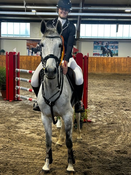 Hier kommt Gracie! Eine 2018 geborene Schimmelstute von Grey Top x Bonaparte x Salito x Wienerwald. Sie ist ca. 1,64m groß und bis Springpferde M (1,20m) siegreich und platziert. Zudem ist sie Mitglied im Hannoveraner Springpferdeförderprogramm durch ihre Zuchtstutenleistungsprüfung die sie mit einer 1A Prämie absolvierte. Gracie ist seit Fohlenalter in unserem Besitz und hat mir als Amateurin meine ersten Platzierungen in L und M Springen ermöglicht. Besonders auszeichnen tut sie ihr Ehrgeiz und ihre Vorsicht am Sprung. Zudem ist Gracie sehr rittig, leicht in der Anlehnung und an den Hilfen und macht auch viel Freude in der täglichen Dressurarbeit sowie im Gelände. Aufgrund ihres tollen Charakters kann ich sie mir gut als Amateur / Juniorenpferd vorstellen. Für weitere Fotos, Informationen und Videos meldet euch gerne bei mir!