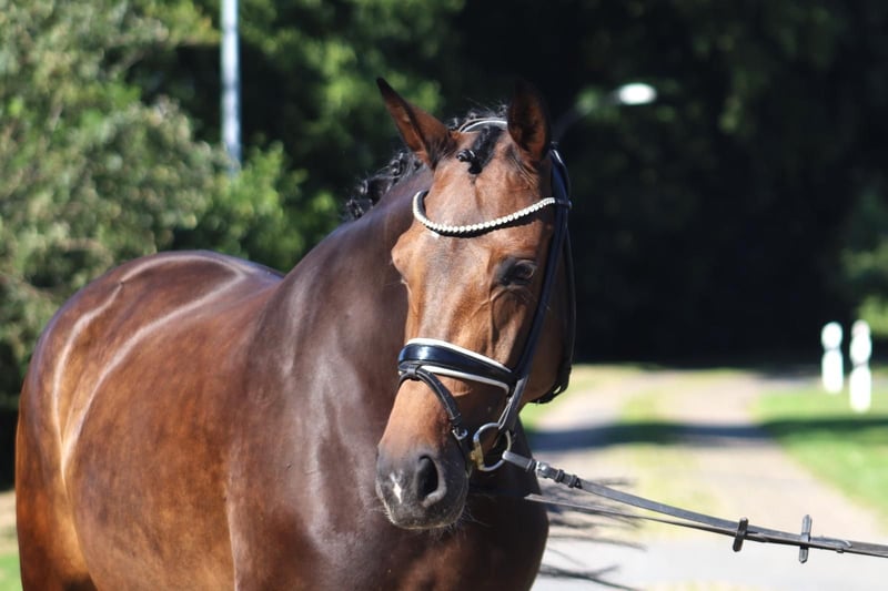 Secret Escape is a mare of above-average quality. She has a successful record in dressage horse class L and has begun training in class M. Due to an absolute lack of time, she is currently not in training and is being offered as a companion horse. Her excellent pedigree makes her highly interesting from a breeding perspective as well. Please contact only by phone at 015737881045.