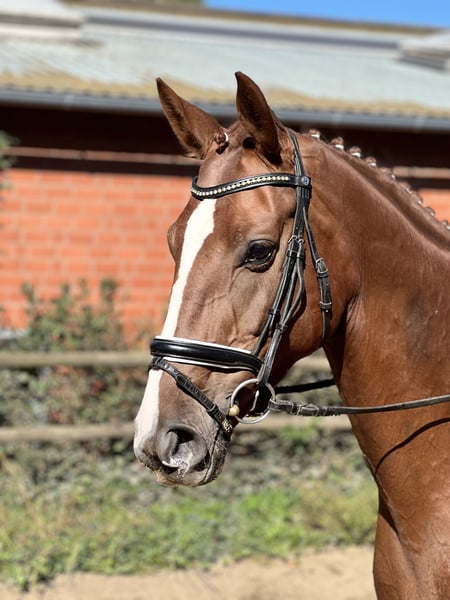 Elegant Hanoverian mare for sale – ideal for dressage! This beautiful chestnut mare was foaled in 2018 and impresses with her attractive appearance and gentle temperament. Standing at 16.1 hh, she offers the perfect size for ambitious riders looking to develop their dressage skills. Her friendly nature and willingness to learn make her suitable for both advanced riders and talented young riders aiming to progress. Please feel free to contact me for more information or if you are interested. Viewing and test rides can be arranged by appointment.