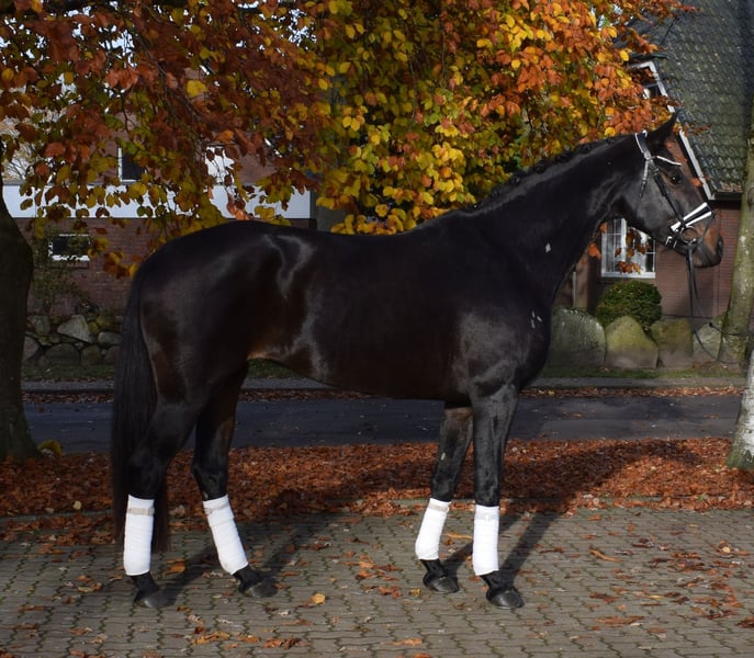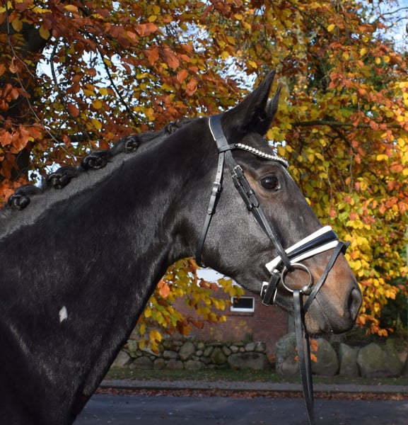 Wunderschöne Stute mit GGA in Ausnahmequalität. Fiala ist sehr leichtrittig, hat viel Ausstrahlung - so wie man sich von einem qualititätsvollen Dressurpferd wünscht. Sie legte 4j. sehr erfolgreich ihre Stutenprüfung ab, danach war sie in der Zucht und wird jetzt wieder geritten. Sie präsentiert sich dabei komplett unproblematisch und es macht jeden Tag unglaublich viel Spaß sie zu reiten. Probereiten jederzeit nach Absprache möglich. Mehr Infos finden Sie auf unserer Homepage. Hof Heisterbusch Team.