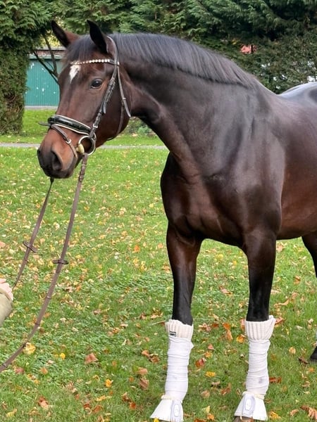 On behalf of a client, we are offering a beautiful 8-year-old, well-built, compact mare for sale. She is stunning, has an excellent conformation, and naturally draws attention wherever she goes. She has three very good gaits, characterized by rhythm and freedom of movement, a lovely, expressive walk with plenty of overtrack, and a fantastic uphill canter. Initially, she was ridden and, due to her quality and pedigree, has been used in breeding. She performed a wonderful job there and has passed on her qualities very well. She is now lightly restarted under saddle and demonstrates excellent rideability, with very smooth, comfortable gaits and a pleasant seat. Unfortunately, due to lack of time and space, we are offering this mare at a favorable price for someone with a smaller budget who is willing to invest in further training. A recent veterinary examination has been carried out and is available. The mare is very herd-friendly and extremely easy to handle. The current video was filmed today, October 22, 2025.