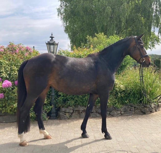 Diese großrahmige und bewegungsstarke Hannoveranerstute von Londontime - Samba Hit III überzeugt durch ihre sehr guten Grundgangarten, angenehme Rittigkeit und Präsenz. Die Stute ist leichtrittig, sitzbequem und zeigt unter dem Sattel eine gute Bereitschaft zur Mitarbeit. Sie ist sehr personenbezogen und sucht eine konstante Bezugsperson, weshalb sie sich nicht als klassisches Familienpferd eignet. In der Arbeit präsentiert sie sich sicher auf A-Niveau und hat mit weiterem gezieltem Training Potenzial für mehr. Mit einem Stockmaß von ca. 1,70 m deckt sie auch größere Reiter gut ab. Sie kennt Herdenhaltung und Führmaschine, läuft ohne Probleme barfuß und zeigt sich im täglichen Umgang sehr verschmust. Für ihre weitere Entwicklung wünsche ich mir jemanden, der Freude an diesem sportlichen Pferd hat und sie weiter fördert. Weitere Informationen werden auf Anfrage gern zur Verfügung gestellt.