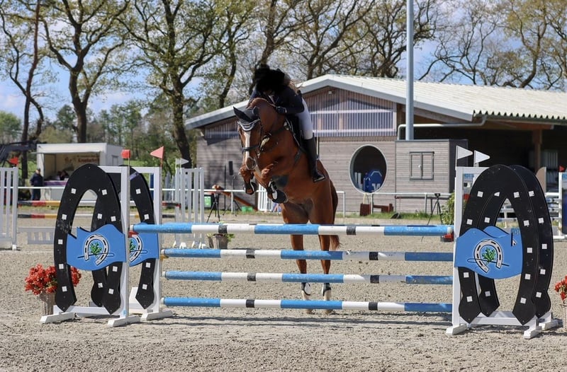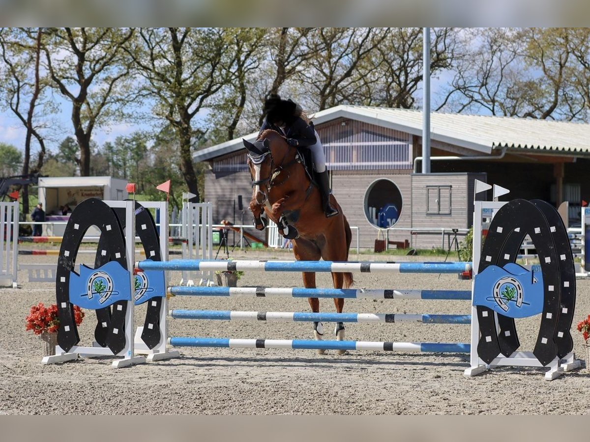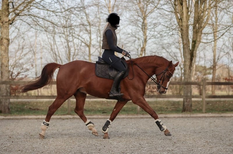 Cinnamon Rose 3 A beautiful mare with three excellent basic gaits and a friendly temperament. She is a well-schooled mare that is easy to ride and perfect as an all-rounder. She enjoys jumping and is not spooky, making her very straightforward in the show jumping course, which makes her suitable for amateurs and young riders. She has achieved placement in 1.20 m classes with an amateur rider and is very easy and reliable over jumps. Her excellent pedigree also makes her interesting for breeding purposes. Additionally, she could be a great hunter prospect for the USA. Mare 8 years old 16.1 hh Carridam (Carrico x Quidam) x Galvano Hanoverian Farrier- and load-trainable She has a very good health certificate, including a back check! Quiet and fearless in the field, even when ridden alone.
