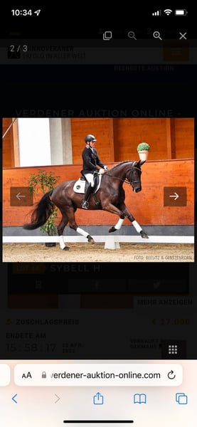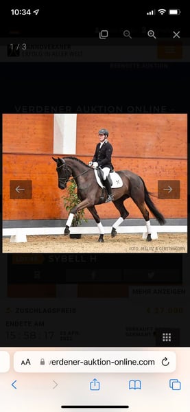 Zum Verkauf steht unsere 8-jährige ,wunderschöne Hannoveraner Staatsprämienstute. Sie besticht nicht nur durch ihr äußeres Erscheinungsbild, sondern vor allem durch ihren unglaublich lieben und zuverlässigen Charakter und ihre drei gleichmäßig guten Grundgangarten. Sie ist eine wahre Traumstute, auf die man sich beim Reiten stehts verlassen kann. Sie hat bereits erfolgreich Turniererfahrungen gesammelt und ist bis Dressurpferde L platziert. Auch mit jungen Reitern hat sie ihre guten Nerven unter Beweis gestellt und konnte auf Turnieren gemeinsam mit Ihnen gute Ergebnisse erzielen. Im Gelände zeigt sich die Stute sehr brav und ruhig, sie ist sehr lieb und lässt sich problemlos in unterschiedlichen Situationen reiten. Auch im Springen, weiß sie zu überzeugen und und zeigt einen guten Sprung. Besonders hervorzuheben ist ihre Fähigkeit, auch unsicheren Reitern Sicherheit zu vermitteln. Zudem ist sie extrem verträglich mit anderen Pferden, bisher steht sie in einer Stutenherde mit jungen und älteren Stuten. Wir suchen für für unsere Stute ein sehr gutes und verantwortungsbewusstes zu Hause, wo sie weiterhin gefördert und liebevoll umsorgt wird. Turnierergebnisse und Videos sind bei Rimondo unter „Sybell 3“ zu sehen.