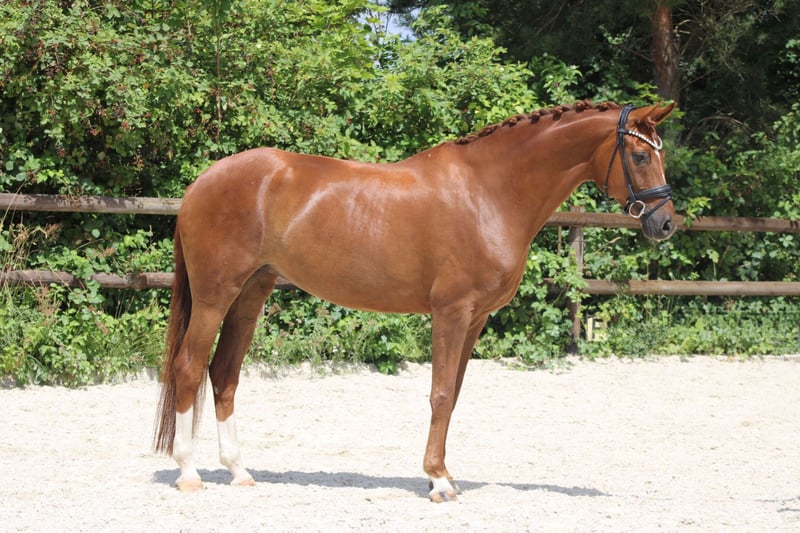 **Sales Advertisement: Beautiful Hanoverian Mare** For sale is our talented Hanoverian mare, born in 2018. With her striking chestnut coat and a height of 172 cm, she is a real eye-catcher. This mare not only impresses with her appealing appearance but also with her enormous potential in dressage. She already shows promising progress in her training and has a friendly, eager-to-learn disposition, making her an ideal partner for ambitious riders. She is well-behaved, well-mannered, and has a balanced temperament. Whether for leisure or competition – this mare offers many opportunities and will certainly bring a lot of joy. She is placed in dressage M tests and regular M dressage with a double bridle. Additionally, she is a reliable partner in the field, whether alone or in a group. If you are interested or have further questions, we look forward to your message!