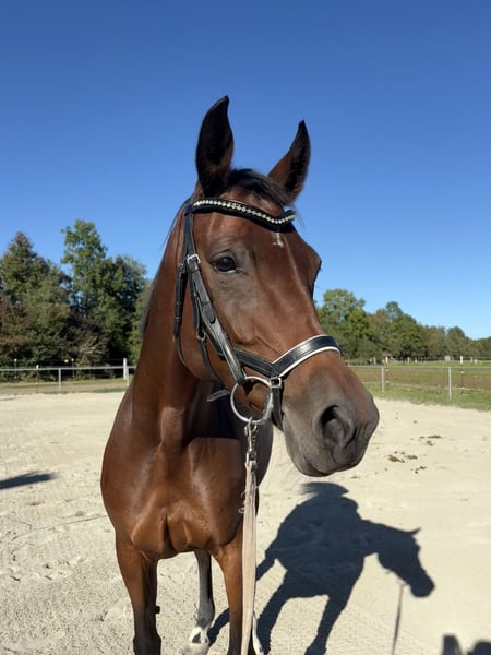Sehr schicke 9-Jährige Hannoveraner Stute, mit super Fundament und Top Bewegung sucht ein neues liebevolles Zuhause. Sie ist leider nicht für den Tuniersport geeignet, da Sie hierzu nicht gemacht ist. Sie ist eine freundliche und sehr menschenbezogene Stute, die eine Bezugsperson benötigt, da sie sehr sensibel ist. Sie möchte gefördert werden und möchte alles richtigmachen. Sie wird seit Anfang dieses Jahres nach längerer Reitpause wieder geritten, hierbei zeigt sie sich sehr brav, engagiert und lernwillig. Aktuell liegt hier bei Ihr ein Befund da, nähere Infos gerne privat. Aufgrund Ihrer Vorgeschichte ist sie nahezu in jeder Situation händelbar, jedoch ist sie kein Anfänger Pferd und benötigt eine konsequente und Feine erfahrene Hand. Sie ist schon immer auf Barhuf und zeigt sich hierbei Problemlos. Sie steht aktuell in einer Box und ist jeden Tag auf der Weide. Jedoch sollte Sie jeden Tag zusätzlich bewegt werden. Sie ist brav im Umgang, sowie im weiteren Handlungen beim Tierarzt (impfen, Zahnarzt) Regelmäßige Vorstellung beim Zahnarzt (04/2025) Osteopaten, etc. wurden gemacht. Bei Interesse oder weiteren Fragen freue ich mich über Ihre Nachrichten. Gerne können wir auch telefonisch Kontakt aufnehmen. Platz vor Preis! Viele Grüße