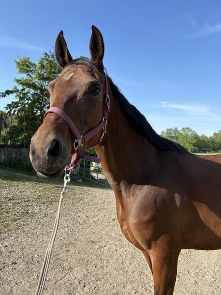 A very attractive 9-year-old Hanoverian mare with an excellent foundation and top movement is seeking a new, loving home. Unfortunately, she is not suitable for competitive riding, as she has not been bred or trained for that purpose. She is a friendly and very human-oriented mare who needs a close bond with her handler, as she is quite sensitive. She thrives on encouragement and wants to do everything correctly. Since the beginning of this year, she has been ridden again after a longer break, and she has proven to be very well-behaved, eager to learn, and motivated. She currently has a medical finding, and I am happy to provide more details privately. Thanks to her background, she is manageable in almost any situation; however, she is not suitable for beginners and requires a consistent, gentle, and experienced handler. She has always been barefoot and shows no issues in this regard. She is currently stabled in a box and is on pasture every day. However, she should be exercised daily to keep her happy and healthy. She is well-behaved in handling, including during veterinary procedures such as vaccinations and dental care. Regular dental check-ups (next due 04/2025), osteopathic treatments, etc., have been performed. If you are interested or have further questions, I look forward to hearing from you. Feel free to contact me by phone as well. Price is secondary to the right home! Best regards