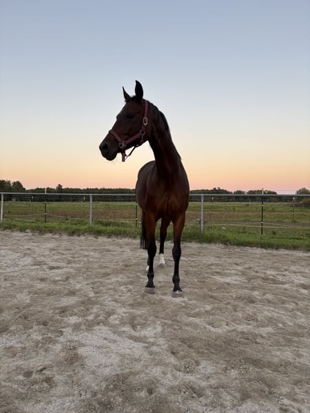 Zeer mooie 9-jarige Hannoveraanse merrie met een uitstekend fundament en top beweging zoekt een liefdevol nieuw thuis. Helaas is ze niet geschikt voor de concoursport, omdat ze daarvoor niet gemaakt is. Ze is een vriendelijke en zeer mensgerichte merrie die behoefte heeft aan een vaste begeleider, omdat ze erg gevoelig is. Ze wil gestimuleerd worden en doet haar best alles goed te doen. Sinds begin dit jaar wordt ze na een langere pauze weer bereden, en ze toont zich daarbij heel braaf, enthousiast en leergierig. Op dit moment is er een medische verklaring beschikbaar; meer informatie geef ik graag privé. Vanwege haar achtergrond is ze in bijna elke situatie hanteerbaar, maar ze is geen beginnerspaard en heeft een consequente en fijne, ervaren hand nodig. Ze is altijd hoefvrij en toont hier geen problemen mee. Ze staat momenteel in een box en wordt dagelijks op de wei gezet. Daarnaast moet ze dagelijks extra beweging krijgen. Ze is braaf in omgang en tijdens verdere handelingen zoals dierenartsbezoeken (vaccinaties, tandarts). Regelmatige bezoeken aan de tandarts (04/2025), osteopaat, etc. worden uitgevoerd. Bij interesse of voor meer vragen hoor ik graag van u. We kunnen ook telefonisch contact opnemen. Plaats boven prijs! Hartelijke groeten