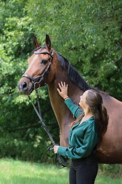 Coeur de la fleur ist ein sehr schickes und feines Pferd mit 3 sehr guten GGA. Sie ist siegreich in der Dressur bis A**. Außengalopp, Kurzkehrt und fliegender Wechsel können auch bereits recht sicher abgefragt werden. Sie ist sehr feinfühlig, leichtrittig und fleißig. Auch das Springen macht ihr viel Spaß und sie geht brav einen kleinen Parcours. Sie fährt alleine oder in Begleitung Anhänger, liebt täglichen Koppelgang und ist brav im Umgang. Wir haben sie direkt vom Züchter, selbst angeritten und ausgebildet. Sie ist nicht für Anfänger oder unsichere Reiter geeignet.