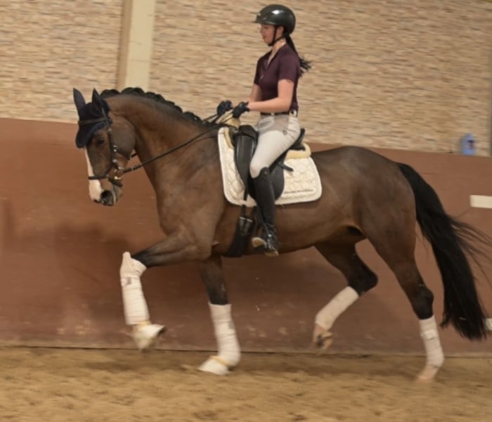 Liebe Interessenten, Ausführliche Videos versende ich gerne auf Anfrage per WhatsApp 00491713438949 Für Terminvereinbarungen Probereiten senden Sie mir bitte eine WhatsApp. Für weitere Fragen bin ich tagsüber per WhatsApp erreichbar, telefonisch erreichen Sie mich am Besten zwischen 16 und 19 Uhr. Ich freue mich auf eine Kontaktaufnahme www.angelina-devittorio.de ⭐️Fräulein Floris⭐️ • Alter: 9 Jahre (2017) Größe: 1,67 m Abstammung: Floriscount x Sandro Hit Ausbildungsstand: DressurpferdeA-Niveau, L Lektionen begonnen • AKU: gute Röntgenbilder vorhanden Wunderschöne 9-jährige Floriscount-Tochter mit Top-Charakter zu verkaufen Zum Verkauf steht eine wunderschöne, 9-jährige Tochter des Floriscount mit drei sehr guten Grundgangarten und einer besonders ansprechenden Optik. Frieda überzeugt nicht nur durch ihre Qualität, sondern vor allem durch ihren außergewöhnlich lieben Charakter. Sie ist stets bemüht zu gefallen, absolut brav im Umgang und dadurch ideal für Amateurreiter geeignet. Im täglichen Handling zeigt sie sich kopfklar, unkompliziert und bereitet jeden Tag große Freude. Die Stute ist solide auf A/L-Niveau ausgebildet und konnte als Fünfjährige Dressurpferdeprüfungen gewinnen sowie mehrfach hoch platziert werden. Aufgrund eines Befundes im Halsbereich (Formveränderung der Facettengelenke) wird sie nicht für den großen Dressursport verkauft. Sie eignet sich jedoch hervorragend für einen ambitionierten Freizeitreiter, der ein zuverlässiges und talentiertes Pferd für den A- und L-Bereich sucht. Im Alltag ist sie dadurch nicht maßgeblich eingeschränkt, wird jedoch kein Pferd für den großen Sport sein. Eine absolute Traumstute mit toller Abstammung, die zudem auch für die Zucht äußerst interessant ist. ⚜️Tel: 0171-3438949 ⚜️a.devittorio@web.de ⚜️www.angelina-devittorio.de / https://www.ehorses.de/angelinadevittorio Facebook und Instagram Angelina De Vittorio Videos bitte per WhatsApp 00491713438949