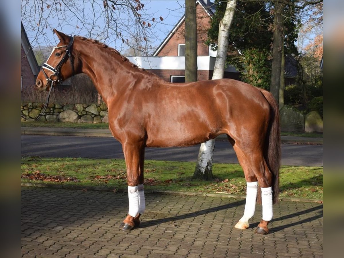 Beautiful mare that presents herself as uncomplicated and calm. She is very well-behaved under saddle and is also familiar with trail riding. Additionally, she is steady-nerved and suitable for riders of all levels. With her noble appearance and high-quality movements, she is a real eye-catcher in the arena. A horse to start your riding journey and build experience! Additional videos available. For more information, please visit our website. Trial rides possible at any time by arrangement.