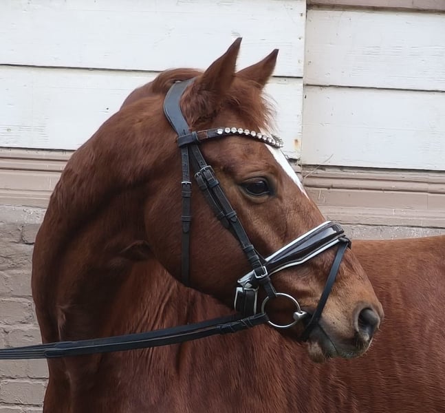 Winni is a very sweet, well-balanced mare with solid basic training and versatile potential. She has mostly been ridden in leisure riding so far and proves to be reliable, calm, and easy to handle. She is comfortable in dressage work, goes willingly into the terrain—both alone and in a group—and also shows awareness and motivation over jumps. With proper encouragement, she could certainly be successful in competition. Winni is a hardy, healthy horse that enjoys spending a lot of time outdoors. Currently, she stays in a box at night with daily turnout on the paddock; she has previously been kept in an open stall and on pasture. She is straightforward to handle, gets along well with other horses, and is confident when it comes to farrier work, loading, and daily routines. She has also participated in lessons with children and re-entrants, impressing with her patience and friendliness. Winni is a high-quality leisure horse that combines safety, riding enjoyment, and sporting potential—ideal for leisure riders or families seeking a reliable mount. With further training, I see her also succeeding in sport. More photos, videos, and glimpses into the daily life of our horses are available on Instagram: [maresi_lange]. Feel free to visit and get to know our four-legged friends a little better in advance. You can find additional photos, videos, and insights into our horses’ daily routines on my website MaresiLange.de or upon request. Please note that the horse’s description is based on subjective impressions and experiences and does not constitute a guarantee of qualities or characteristics. Trial riding is at your own risk. The sale is carried out on behalf of the owner. For viewing or trial riding, we reserve the right to charge a fee of €30, which will be deducted from the purchase price if the horse is bought.
