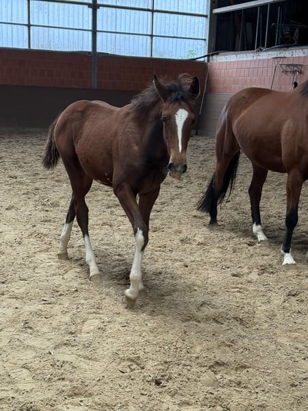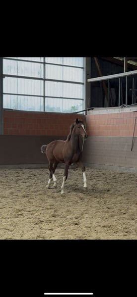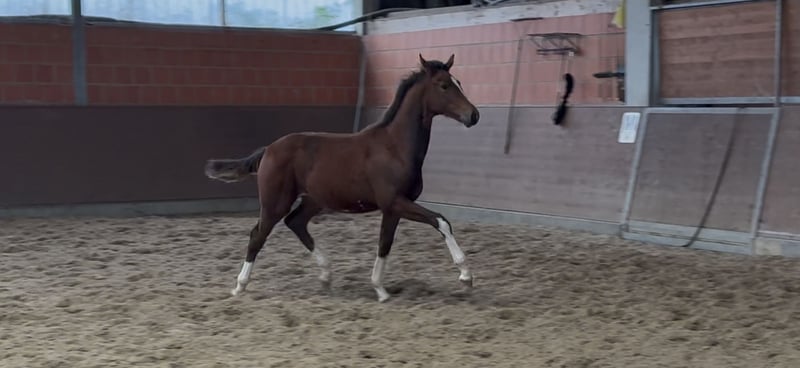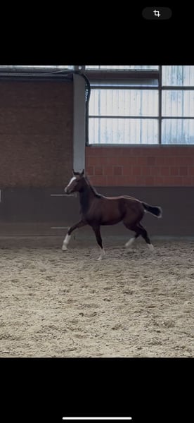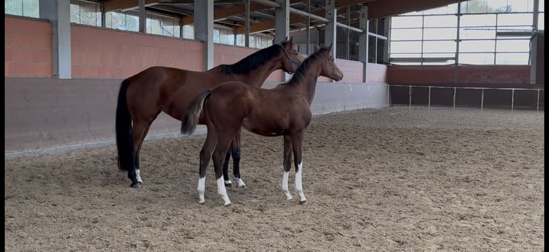 Eye-catching filly with expressive movements is still looking for a loving home. She is growing up in a species-appropriate herd environment, is very sociable and halter-trained, as well as farrier- and loading-friendly. Anyone looking for a friendly partner for the future will find the right match with her. She comes from a very good maternal line, which also makes her interesting for breeding. If interested, please feel free to contact us by phone or via WhatsApp at 0172-2942839.