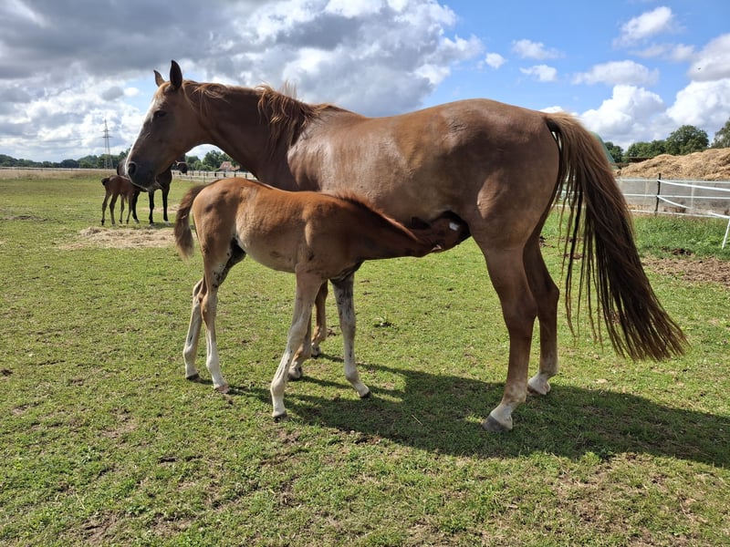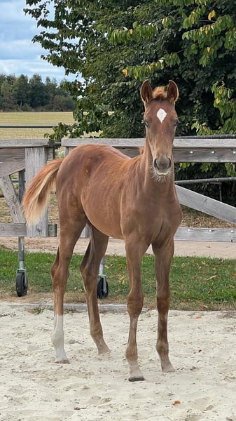 Unsere kleine Prinzessin Bell sucht ihr neues Zuhause. Bell ist nicht nur ein wunderschönes Stutfohlen im roten Mantel, sondern sie weiß auch was es heißt sich elegant zu bewegen. Sie ist mit 3 sehr guten Grundgangarten ausgestattet und hat einen sehr feinen Körperbau. Nicht nur optisch ist sie toll. Bell ist sehr neugierig und liebt es zu kuscheln, ist dabei aber nie aufdringlich. Sie kennt bereits das Fohlen ABC, sie war schon beim Hufschmied, wird regelmäßig entwurmt und läuft am Halfter.