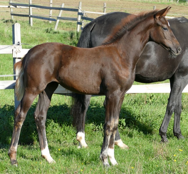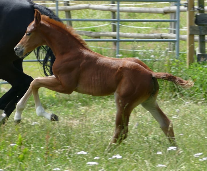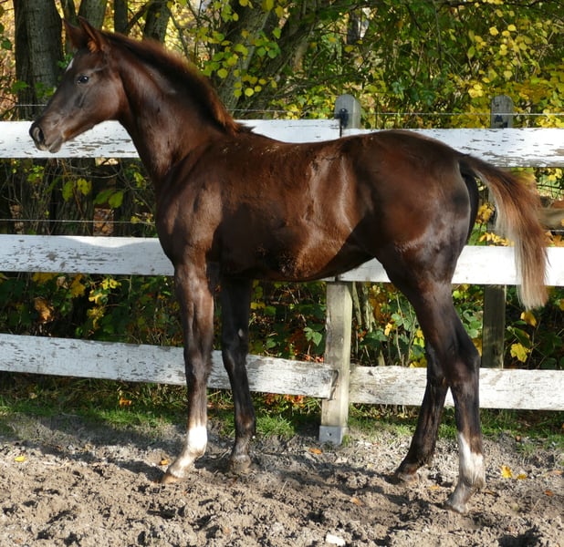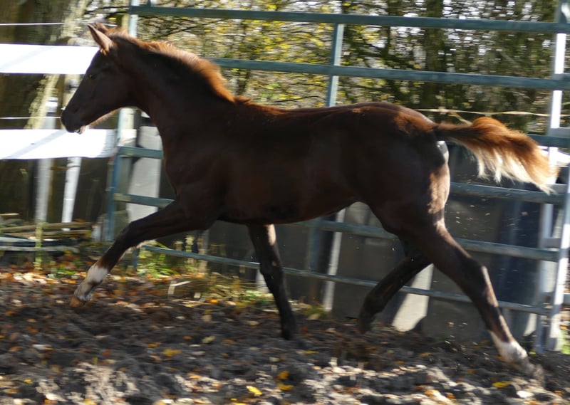 Schokofuchs aus bestem Züchterhaus, Großmutter ist Vollschwester zu Dancier. Vollbruder des Fohlens war 2024 5. auf dem Deutschen Fohlenchampionat, Mutter im Hann. Dressurpferdeprogramm *,ein weiterer Bruder von Fahrenheit erfolgreich Bucha bei den 6j, eine Schwester von Sezuan Siegerstute und HvdD Schau prämiert. BEYONCE ist ein altersgemäß erzogenes, vertrauensvoll dem Menschen zugewandtes Stutfohlen mit sehr viel Qualität, regelmäßig entwurmt und beim Schmied, sehr gut gefüttert und in bester Kondition. Wird jetzt abgesetzt und kann zur Aufzucht bei uns bleiben. Aktuelle Videos werden gerne unter 0171-4720209 verschickt