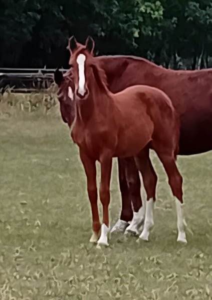 Zum Verkauf steht ein vielversprechendes Hannoveraner Fohlen mit hervorragender Abstammung. Rasse: Hannoveraner Farbe: Fuchs Gangqualität: Gute, elastische Grundgangarten mit viel Dynamik Vater: Venturo – HLP-Sieger, modern, sportlich und mit überdurchschnittlichem Bewegungsablauf ausgestattet. Mutter: Prämienstute von Don Darius, selbst erfolgreich im Turniersport vorgestellt und entstammt einer Mutterlinie mit mehreren Staatsprämienstuten in Folge. Diese Linie steht für Rittigkeit, Leistungsbereitschaft und starke Vererbung. Vorteile dieses Fohlens: Direkt vom Züchter Moderne, typvolle Erscheinung Bewegungsstark und korrekt Beste Voraussetzungen für Dressur- oder Zuchtnutzung Dieses Fohlen vereint moderne Sportlichkeit mit bewährter Zuchtqualität – ideal für ambitionierte Reiter oder Züchter. Bei Interesse oder Fragen freue ich mich über eine Nachricht! Besichtigung jederzeit nach Absprache möglich.