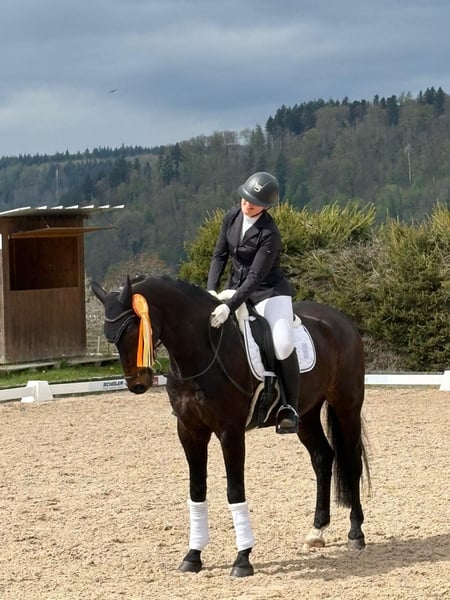Zum Verkauf steht ein 11-jähriger Dressurwallach mit hervorragender Abstammung (Vater: Fürst Belissaro) Stm. 174 cm. Bereits 9-jährig konnte er Erfolge bis zur schweren Klasse (S) erzielen. In unserem Besitz wurde er anschließend von einer Amateurreiterin erfolgreich in der Klasse A vorgestellt. Er ist ein motiviertes, ehrliches und leistungsbereites Pferd mit sehr positiver Arbeitseinstellung. Sein Reiter steht für ihn stets im Mittelpunkt. Ob im täglichen Training, auf Turnieren oder im Gelände – er zeigt sich jederzeit zuverlässig und ausgeglichen. Im Umgang ist er sehr brav, unkompliziert sowie verlade- und schmiedefromm. Aufgrund der Aufgabe des Reitsports wird er nur in beste und fördernde Hände abgegeben. Besondere Merkmale: S-erfolgreich Amateurgeeignet Sehr rittig und zuverlässig Geländesicher Schmiede- und verladefromm Klar im Kopf und arbeitswillig Weitere Angaben: Alter: 11 Jahre Geschlecht: Wallach Abstammung: Fürst Belissaro Standort: Freiburg Preis: 38.500 € VHB Kontakt: Telefon: 0160 6111720