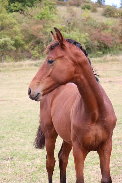 Hengstjährling von Von und Zu (LG Celle) S-Dressur erfolgreich der Mutterstamm bringt SPORTLICHKEIT aber auch CHARAKTER und RITTIGKEIT mit ! Mutter StPrSt, Rpfd. erfolgreich und Herwart v.d. Decken Schau 1e-dekoriert, sie ist MEGA LIEB und RITTIG und vererbt das auch durchschlagend an ihre Nachkommen, leistete auch sehr gute Dienste als erstes Umsteigerpferd für junges Mädchen, das aus dem Pony rausgewachsen war Großmutter, auch StPrSt mit guter SLP, Rpfd-Reserve und nach der Zucht als leistungsbereites Freizeitpferd (Dressur und Springen, auch Turnier) an Dame verkauft er ist langbeinig, korrekt, sehr edel, mit 3 guten Bewegungen, anhänglich und interessiert direkt vom Züchter aus erster Hand