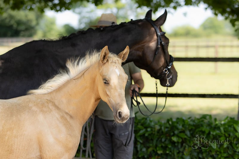 Quinario B Qandide x Bonifatius x Londonderry Zum Verkauf steht unser Hengstfohlen Quinario aus diesem Jahr. Er wurde am 25.03.2025 geboren. Aufgrund seines Vaters, ist er ein sehr schicker heller Palomino. Sehr Lange Beine, einen schwungvollen Galopp, herausragenden Trab und starken Schritt. Auf der Fohlenschau wurde er deswegen als Reservesieger prämiert. Quinario ist sehr selbstständig und absolut unerschrocken. Bierbikes an der Straße, tief fahrende Heißluftballons, Feuerwerk und Musikkapellen tangieren ihn nicht. Ab der ersten Woche üben wir das Fohlen ABC, somit sind alle unsere Fohlen bei Abgabe halfterführig, verladefromm, kennen den Schmied und Tierarzt. Sie lernt alle täglichen Geräusche auf dem Hof kennen und kennen Hunde. Unsere Stuten mit Fohlen laufen im Sommer zusammen auf 2,5ha Weide, Tag und Nacht. Im Herbst und Winter sind sie 10-12h tagsüber draußen mit 24/7 Heu und nachts in großen Geburtsställen. Somit wachsen die Fohlen sehr schön auf und gewöhnen sich direkt an alle Wetterarten und Temperaturen. Er ist das fünfte Fohlen seiner Mutter. Beautiful Mind 8 ist eine sehr elegante schöne Staatsprämien Anwärterin aus dem Stutenstamm der Juggema. Sie ist dunkelbraun und ca 168cm groß. Ihr erstes Fohlen ein Rapphengst von Goldberg wurde direkt nach der Geburt verkauft. Ihr zweites Fohlen ein Rapphengst von Despacito ging über die Elite Hannoveraner Auktion nach Spanien. Ihr drittes Fohlen aus Franziskus, wurde prämiert und befindet sich aktuell in der Ausbildung seiner Reiterin. Er kann über Instagram verfolgt werden. Und ihr viertes Fohlen Felisa, ist bei uns und kann sich gerne angeschaut werden. Beauty ist wahnsinnig verschmust und gutmütig und vererbt diesen tollen intelligenten Typ immer an ihre Fohlen weiter. Beauty ist wie alle unsere Stuten getestet und WFFS negativ. Stutenstamm: Grafitti v. Graf Top (DRE: S**-erfolgr. mit Elisabeth Beneke-Backhaus); Saphir v. Sunlight xx (VS: int. CIC***-erfolgr. mit Gerd-Olaf Neuberg); Dorian Gray v. Don Picardi (VA 2009: 47.000 €, DRE: S*-erfolgr. mit Katrin Alkenings); gek. Hengst Desperados FRH v. De Niro (VA 2003: 104.000 €, Einzelbronze u. Teamgold Olympische Spiele Dressur 2016 mit Kristina Bröring-Sprehe); Don Diego v. Don Frederico (VA 2007, DRE: int. GP-erfolgr./Bronzemed. EM U25 2016 mit Juan Pablo Matute Guimon); gek. Hengst Don Noblesse v. Dancier (DRE: int. GP-erfolgr. mit Susan Pape); Weneziano v. Wolkenstein II (DRE: int. GP-erfolgr. mit Martina Steisslinger) Akrobat v. Acord II (SPR: int. 1,40 m- erfolgr. mit Philipp Ulrich). Der Vater Qandide ist ein schöner Cremello Hengst, der seine ruhige gelassene Art an seine Fohlen weiter gibt. Wir hatten bereits ein Fohlen von ihm aus einer anderen Stute und können ganz klare Parallelen ziehen. In ihrer gelassenen und nichts aus der Ruhe bringenden Art sind sie sich sehr ähnlich. Qandide ist ECVM und WFFS frei. Mehr Informationen zu ihm unter https://www.hengste-rohmann.de/qandide Uns ist eine gute Aufzucht und Transparenz sehr wichtig, daher kann man einen täglichen Einblick in unsere Zucht bei Instagram bekommen. Q kann aber natürlich auch gerne bei uns besucht und angeschaut werden. Ein aktuelles Bewegungsvideo kann gemacht werden und wird gerne auf Anfrage verschickt. Auf den letzten Bildern ist die Mutter sowie bisherige Nachzucht zu sehen. Er steht noch bei uns, wird jedoch bald in eine erstklassige Aufzucht umziehen. Der Platz könnte mit übernommen werden bei Bedarf. Bei Interesse oder Fragen können Sie uns gerne per Nachricht, Whats App oder Telefon kontaktieren. Telefon: +49 152 53765924