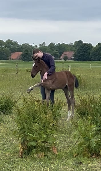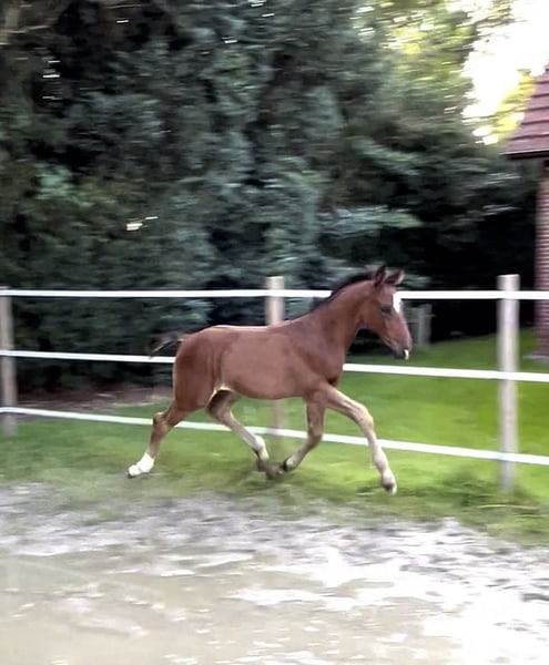For sale is an extraordinary, large-framed Hanoverian colt of modern type, outstanding movement ability, and an excellent character. A true stallion candidate with high development potential for sport and breeding! Pedigree: Escanto PS x Dimaggio Sire: Escanto PS The Escamillo son Escanto PS impresses with his dynamism, light-footedness, and modern conformation. He is owned by Paul Schockemöhle and is considered one of the most promising young stallions of his generation. ➡️ Grandfather Escamillo was Vice World Champion of young dressage horses and is now successful at Grand Prix level. ➡️ Through Escolar, the proven performance blood of the Westphalian dressage elite flows into his lineage. Dam line (born and raised by Suzanne Davis in England) through Dimaggio – a legend in dressage horse breeding. Dimaggio, himself a World Champion of young dressage horses, has had a lasting impact on breeding through rideability, elegance, and movement quality. ➡️ He is the sire of numerous Grand Prix horses and licensed stallions, including Desperado FRH, Dimaggio Black, and Don Noble. ➡️ The maternal line not only brings performance but also the best character – this foal is attentive, friendly, and uncomplicated to handle. ⭐ Special features: • Large-framed, modern & type strong • Swinging, rhythmic movements • Excellent character – balanced, people-oriented • High-quality genetics for breeding & sport • Correct foundation – stallion candidate with perspective We are happy to send photos and videos upon serious interest. Location: 26506 Norden Please feel free to contact us for more information or to arrange a viewing appointment. An extraordinary colt for connoisseurs and supporters of dressage horse breeding!