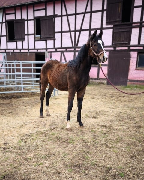Bildschöner und athletischer Sohn von Duplexx, bewegungsstark, mit herausragender vielseitiger Veranlagung. Der junge Hengst hat sehr viel Ausstrahlung, ein korrektes Exterieur und sehr gute Grundgangarten. Besonders hervorzuheben sind der gute Galopp und der raumgreifende Schritt. Durch den hohen Vollblutanteil und die erstklassige Abstammung empfiehlt er sich als Nachwuchspferd für die Vielseitigkeit und das Springen. Korrekt gebaut, wach, intelligent, absolut menschenbezogen. Aufgrund seiner Grundqualität und seines freundlichen Wesens für Profis und für Amateure gleichermaßen gut geeignet, mit Perspektive für den gehobenen Turniersport. Auch als sportliches Familien- und Freizeitpferd, in der Dressur und als Allrounder interessant. Kerngesund, regelmäßig entwurmt, regelmäßig beim Schmied, regelmäßig an der Hand, in optimalem Pflegezustand. Aus liebevollem Züchterhaus mit Familienanschluss. Wir freuen uns über Ihr Interesse und zeigen Ihnen dieses feine, vielseitige Nachwuchspferd gern vor Ort! Kontaktieren Sie uns gerne auch per WhatsApp: +49 176 55323449. Der Vater Duplexx ist ein doppelt veranlagter Ausnahmehengst! Neben zahlreichen Erfolgen in S-Dressuren und Vielseitigkeitsprüfungen sammelt er Seriensiege in Springprüfungen. Altersgemäß ist er sowohl in der Dressur als auch im Springen erfolgreich bis zur Klasse S. Duplexx gilt als neuer Star unter den Vererbern und zählt zu den bedeutendsten Söhnen des Diarado. Wir erwarten, dass seine Rittigkeit, Leistungsbereitschaft und Athletik auch in diesem Nachwuchspferd durchschlagen! Die Mutter ist die PHD* Staatsprämienstute Noblesse von Nobre xx aus dem neuen Programm Hannoveraner Dressurpferdezucht. Sie absolvierte eine herausragende Stutenleistungsprüfung (nur Noten 8 und 9 in allen Bereichen). Ihr Vater Nobre xx zählt zu den Top 100 der WBFSH-Vielseitigkeitshengste und ist ein leistungsgeprüfter Vollblüter mit erstklassigen Springqualitäten. Die Linie führt zurück auf den erfolgreichen Hannoveraner Stamm der Schligrune. Hannoveraner Stutenstamm der Schligrune: Gekörte Hengste: Chivas (v. Conteur, LG Celle), Barlöwe (v. Bariton) Sportpferde: Aribo (v. Accord Il, Dressur Grand Prix), Belle de Jour (v. Bariton, S-Springen), Campbell (v. Catoki, 1,60m Springen), Caretan (v. Caretello B, 1,40m Springen), Cascaja (v. Coupe de Coeur, 1,45m Springen), Caspar (v. Cornet's Prinz, 1,40m Springen), Centano (v. Chalan, 1,50m Springen), Chintan Z (v. Campion Z, 1,40m Springen), Clementine (v. Catoki, 1,45m Springen), Como (v. Catoki, 1,40m Springen), Dean Martin (v. Dimaggio, Dressur Grand Prix), Donath (v. Dolentino, S-Springen), Don Quan (v. Don Carlos, S-Springen), Grace WB (VA, v. Grey Top, 1,40m Springen), Hospita van de Rostal (v. Cicero Z, int. 1,60m Springen), Noble Savage (v. Noble Champion, int. 1,50m Springen), Lalotta (v. Linton, 1,40m Springen), Larry (v. Landjonker, 1,50m Springen), Lotti Laptop (v. Laptop, 1,40m Springen), Luna (v. Lancer Ill, 1,40m Springen), Phigaro (v. Pythagoras Z, 1,50m Springen), Sanja (v. Sandro, 1,50m Springen), Seana (v. Stolzenberg, 1,40m Springen), Speedy Boy (v. Spitzbube, S-Springen), Diarado's Beste (v. Diarado, 1,45m Springen), Quen-dira-t-on (v. Quattro B, 1,40m Springen), Widerhall (v. Wiesenbaum xx, S-Vielseitigkeit), Glint of Gold (v. Grande, CCI3*).