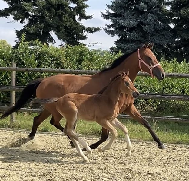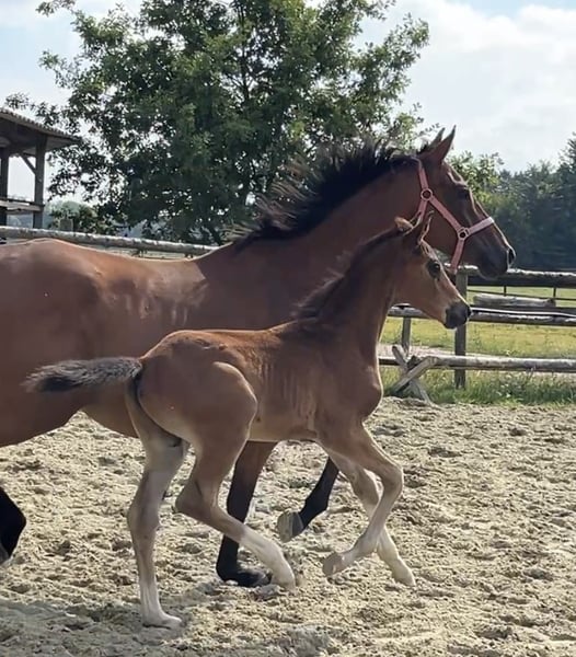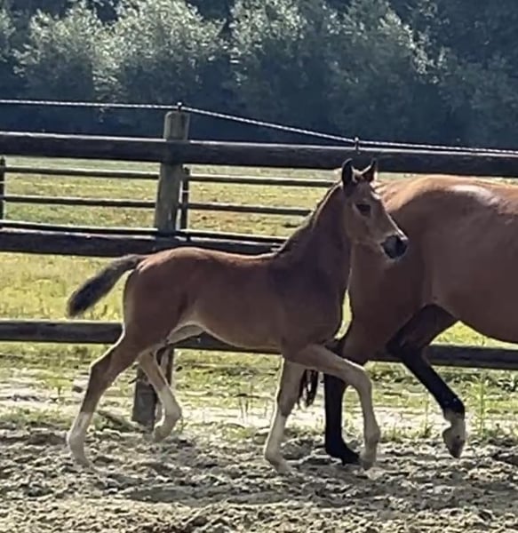 Erst am 08.06.25 geboren weiß er schon sich zu präsentieren. Ein Hengstfohlen von Sarai L x Spökenkieker x Baroncelli möchte in die selben Fußstapfen. Das sollte ihm gelingen.