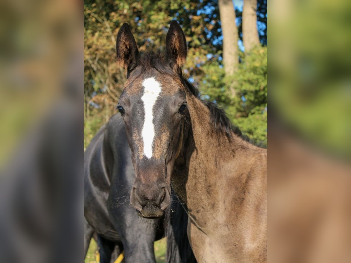 For sale is the exceptionally typified Hanoverian black stallion Juvinius vom Leisch, born on June 15, 2025. This young charmer already impresses with his modern expression, powerful movement, and strikingly friendly demeanor. His sire Jameson RS2 (Blue Hors Zack x Negro) is considered one of the most remarkable dressage sires in Europe. Outstanding rideability, maximum movement quality, and a picture-perfect career characterize him. The dam Rocella (Rotspon x Salvano) comes from an elite lineage that has already proven itself multiple times in sport. Several of her offspring have successfully competed up to Inter I and Grand Prix, and a sister is currently competing at Hof Kasselmann. Rocella's progeny shows remarkable versatility – in the dressage arena, in show jumping, and even in driving sports. She is also known for her above-average health: several offspring have been X-rayed with a grade of 1. This foal promises not only sporting potential but also breeding relevance – a true candidate for ambitious dressage riders or stallion breeders who focus on quality and performance. Juvinius is growing up in a species-appropriate herd with other foals, is well-socialized, people-oriented, and is lovingly cared for. He is microchipped, dewormed, and will be registered with the Hanoverian Association. Current videos are available and can be provided upon serious interest. Please feel free to contact us for further information or to arrange a viewing appointment.