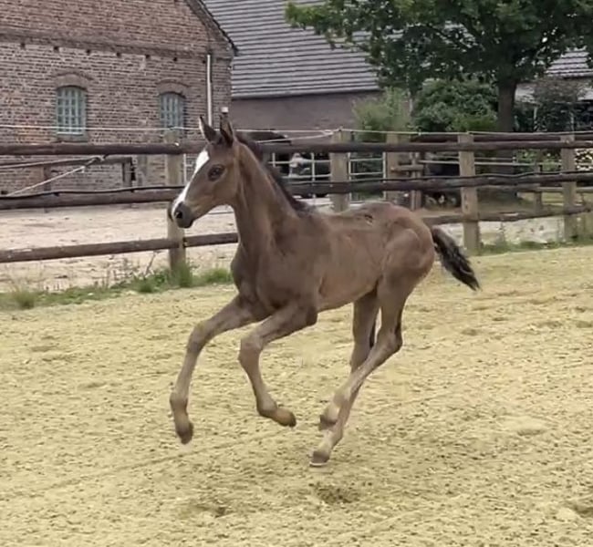 Nieuwsgierig en alert is de zoon van Extreme U.S. (Escamillo x Vivaldi), afkomstig van een Farrell x De Niro moeder. Geboren op 30-05-2025, hij staat op een correct fundament. Dankzij de goede genen van beide ouders en het vriendelijke, liefdevolle karakter van zijn moeder, zal Eniro zeker een partner worden die altijd wil gefallen en door het dressuurringetje danst. Hij geniet van zijn opvoeding in een sociale kudde. Zijn moeder staat ook te koop.