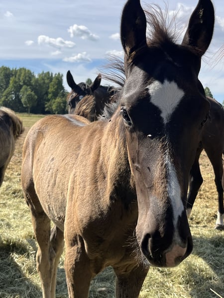 Curious and lively, he is the son of Extreme U.S. (Escamillo x Vivaldi) out of a Farrell x De Niro mare. Born on May 30, 2025, he stands on a correct foundation. Thanks to the good genes of both parents and the wonderful loving character of his mother, Eniro will surely become a partner who always wants to please and dances through the arena. He enjoys his upbringing with good socialization in a herd environment. His mother is also for sale.