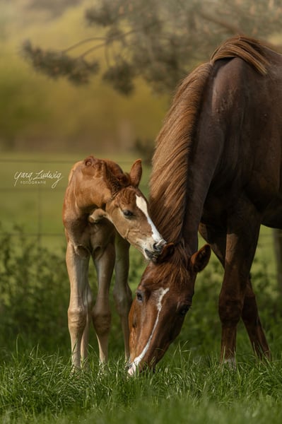 Sky-Dweller ist ein bezauberndes Hengstfohlen, geboren am 26.04.2025, der mit seinem Charme und seinem Potenzial begeistert. Auf den Fotos ist er gerade mal 5 Tage alt. Er präsentiert sich in einem schönen Fuchs-Farbton, der sich mit der Zeit zu einem eleganten Dunkelfuchs entwickeln wird. Besonders auffällig ist die schöne Blesse, die ihm ein einzigartiges Aussehen verleiht. Auf der Fohlenschau in Luhmühlen wurde das junge Talent mit 8,5 für Typ und 7,5 für den Rest bewertet. Er hat alle Herausforderungen souverän gemeistert, zeigt sich brav auf dem Anhänger, ist im Umgang äußerst lieb, verschmust und freundlich - ganz wie seine Mutter. Die Kulisse, das Publikum aber auch das Warten auf dem Anhänger war für das Fohlen überhaupt kein Problem. Das Fohlen wächst gemeinsam mit seiner Mutter in einer harmonischen Herde von fünf Stuten mit Nachwuchs auf, was ihm eine natürliche und soziale Umgebung bietet. Über den Mutterstamm: Fajana ist eine 2011 geborene Dunkelfuchsstute aus Fürst Nymphenburg × Liseth (aus Londonderry). Sie ist eine Staatsprämienstute aus der Zucht von Hans-Henning von der Decken. 2014 hat sie die Leistungsprüfung gemacht. Ihre sehr guten Grundgangarten sind schwungvoll und ausdrucksstark. Wertnote Rittigkeit Richter: 8,0 Wertnote Rittigkeit Fremdreiter: 9,5 Sie war siegreich in Dressurprüfungen der Klasse A. Stockmaß 168cm Auf den Bildern ist das Hengstfohlen 5 Tage alt. Ein Foto ist dabei von der Fohlenschau am 13.06.2025 in Luhmühlen.