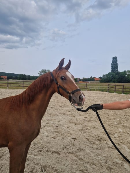 Siblings of the mother have been successful internationally in dressage. And another brother is a Bundeschampion. A relaxed, well-moving stallion with a great character. He is not the biggest, but he is one to fall in love with!! Tel 0160 94 44 14 76