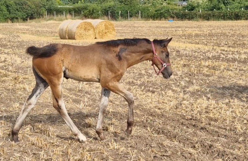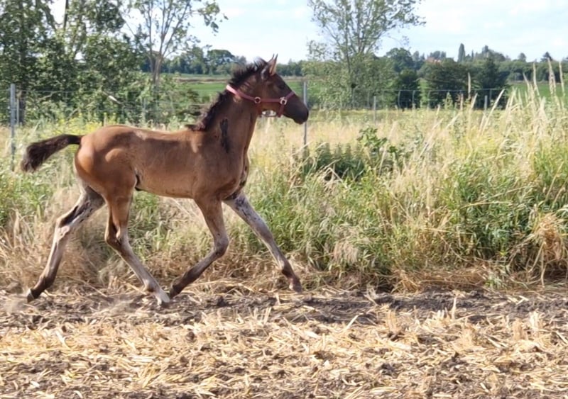 Correctly built foal with very good hindquarters. Very sweet to handle. Details of the dam line: Line of Aslaug top sires such as Hohenstein, Caprimond, Weltruhm, Weltmeyer.