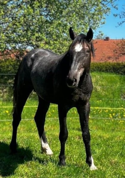 Dieser bildschöne zweijährige Sohn des Birkhof's Arezzo Man FBW ist erstklassig gezogen und verfügt über eine herausragende genetische Springveranlagung! Er bietet sich mit seiner hohen Grundqualität und seinem modernen, sportlichen Typ als Körkandidat sowie als talentiertes Nachwuchspferd für den Springsport an. Er entwickelt sich vorbildlich, ist regelmäßig an der Hand und genießt aktuell noch einige ruhige Wochen auf der Weide. Der Hengst wird groß: wir erwarten ein Endmaß von etwa 178 cm. Unkomplizierter Junghengst, klar im Kopf und ohne Unarten. Bewegungsfreudig, mit drei ausdrucksstarken Grundgangarten und einem elastischen, gut balancierten Galopp ausgestattet - ein Pferd für die Zukunft! Aufgrund seines guten Charakters, seiner guten Grunderziehung und seiner vielversprechenden Perspektive eignet er sich ideal für ambitionierte Amateure mit Erfahrung im Umgang mit Junghengsten ebenso wie für Profis, die ein vielversprechendes Nachwuchspferd für den gehobenen Springsport suchen. Kerngesund, vorbildlich entwickelt, sehr guter Pflegezustand. Regelmäßig entwurmt, regelmäßig dem Schmied vorgestellt, schmiedefromm, verladefromm. Direkt vom Züchter. Vater dieses zweijährigen Youngsters ist der überragende Birkhof's Arezzo Man FBW – ein Ausnahmepferd, das im Juni mit der sensationellen Wertnote 9,8 unter Richard Vogel die Qualifikation zum Bundeschampionat der sechsjährigen Springpferde 2025 gewann. Dieses Ergebnis gilt als historische Sensation und markiert einen bedeutenden Meilenstein in seiner Karriere! Arezzo Man wurde inzwischen für die deutsche Vizemeisterin und Nationenpreissiegerin Sophie Hinners gesichert und steht im Besitz des internationalen Damenteams „Iron Dames“. Der amtierende Bundeschampion der Fünfjährigen entwickelt sich kontinuierlich weiter – zu einem Championatspferd von internationalem Format. Wir sind überzeugt, dass sich Arezzo Mans außergewöhnliches Springvermögen, seine Kraft, Rittigkeit und sein ausgeglichener Charakter in diesem jungen Nachwuchspferd widerspiegeln werden. Sehr gerne zeigen wir Ihnen dieses wunderbare junge Springpferd vor Ort! Ein Kennenlernen ermöglichen wir umgehend. Kontaktieren Sie uns gerne auch bequem per WhatsApp: +49 176 55323449.