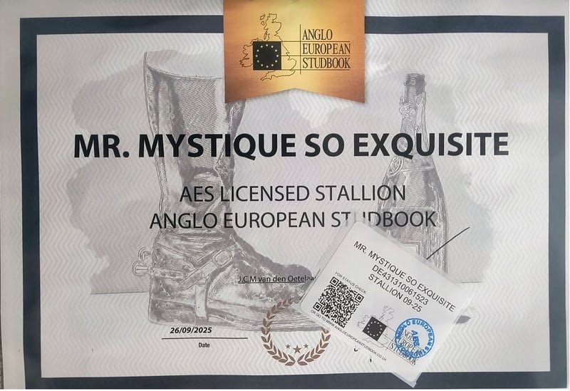 Beautiful young dressage stallion AES licensed. Mr. Mystique is now a 2.5-year-old stallion who recently received AES (Anglo European Studbook) license (approved). He is a stallion of exceptional quality and beauty very similar to his sire Morricone I. He is an outstanding prospect for both sport and future breeding. He possesses enormous potential. This horse distinguished himself at all shows and championships since he was a foal - a true eyecatcher. The horse has a wonderful temperament, is very responsive, knows humans and shows them respect. He is trusting and calm in handling. He is regularly trimmed without any issues and pastured daily. He has not been broken in yet under saddle, but knows basic groundwork and has been introduced to a bridle. He has outstanding movement, very similar to his sire. He is working through his entire body, his movements are smooth with cadenced trot. He has traveled longer distances - loading and traveling without any problems. The horse has never been injured. In short, he is a stunning stallion with an excellent pedigree. His potential is truly remarkable. Here you can find more details: https://angloeuropeanstudbook.co.uk/database/de431310061523-mr-mystique-so-exquisite https://www.horsetelex.com/horses/pedigree/2498496/mr-mystique-so-exquisite Below is a link to when the stallion was still a foal: https://www.youtube.com/watch?v=SCnuXMsQoMg Additionally, you can find plenty of current videos (on my profiles So Exquisite - YouTube, facebook or instagram) and some photos attached. https://www.facebook.com/reel/1349484180214239 https://www.facebook.com/reel/1900624214140797 https://youtube.com/shorts/lBcptkbNEUM?si=QaSQHlz3wbJZmIp5 https://youtube.com/shorts/n4z6yrC4zIA?si=LzxrYzLfuaBAul0G In respect to logistic, it should not be a problem to present this stallion to potential buyers also from UK. The horse is located near Szczecin, 74-100 Chwarstnica, Poland. There are affordable Ryanair flights to Goleniow Airport from London-Stansted (1h50min flight) or from Liverpool (2h flight). If needed, we can provide transfer from the airport to the stable (ca. 60km) to facilitate viewing/examining of the horse. We also collaborate with a certified transporter, the only one in Poland with a UK license. For more videos please contact me viaWhatsapp. Kind regards, Agata