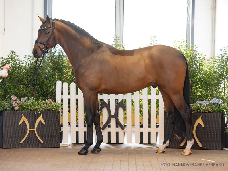 Be my Gold ist ein bildschöner Youngster, der schon rein optisch bei jedem Auftritt die Blicke auf sich zieht. Mit seiner Ausstrahlung und seinem sympathischen Auftreten weiß er auf ganzer Linie zu überzeugen. Auch wenn er mit Abstand der jüngste Kandidat dieser High-Level-Auktionskollektion ist, so ist der Ansatz seines Besitzers und Pferdekenners Heinz Ahlers nachvollziehbar, denn schon als Dreijähriger schaffte es Be my Gold in das Bundeschampionatsfinale. Und die Option, diesen Rohdiamanten bis zum Auktionsende coachen zu können, gefiel seinem Besitzer derart, dass er nun erstmals Verdener Auktionsaussteller wird. Altersentsprechend gefördert zeigt Be my Gold seine Veranlagung auf geraden und ersten gebogenen Linien. Auf den ersten Blick sind der Galopp und der Schritt die absoluten Höhepunkte des Hengstes; sein Lernwille und seine Rittigkeit lassen den Trab aber auch schon je nach Einwirkung des Reiters im lockeren Grundtrab sowie mit kraftvoll kadenziertem Ablauf darstellen. Im Umgang wirkt Be my Gold sowohl zuhause als auch bei seinen Turnierstarts inklusive Übernachtungsturnieren lässig, händelbar und gleichzeitig wach. Sportname: Be my Gold 2 Sporterfolge: RPF: 2/5. 1/3. 1/4. 1/5. 2. Generation Sportpferde Dressur: gek. Hengst Best of Gold Son v. Best of Gold (DRE: M* mit Ella-Alea Maulhardt,Championat f. Reitpferde 2018,Verden 2016,HM 2016: 120.000 €,Prä.Dre. Körung Verden 2016). Auktionspferde: Fürst Sun v. Fürst Nymphenburg (FoVA 2015). 3. Generation Sportpferde Dressur: Boogie Woogie 9 v. Best of Gold (DRE: Grand Prix mit Maja Puschmann,Dressurprüfung Kl.S*** mit Piaffe und Passage 2025); Schoko Gold v. Serano Gold (DRE: S* mit Stefanie Hohenhorst); Royal Dinaro v. Royal Diamond (DRE: M** mit Pia Linke); Belrano Gold v. Belissimo M (DRE: M mit Shawna HARDING). Aufbauprüfungen Dressur: Batotelli Gold v. Best of Gold (DRE: M mit Birte Ahlers); VbPr Evita Gold v. Belissimo M (DRE: M mit Nele Lübbehusen); Endless Love/Endless Love Bec v. Best of Gold (DRE: L); Ella Gold v. Balesteros (DRE: L); Royal Grey v. Royal Diamond (DRE: L). 4. Generation Sportpferde Dressur: Bellini Gold v. Belissimo M (DRE: Grand Prix mit Yvonne Appen,Dressurprüfung Kl. S*** - Grand Prix de Dressage 2019); gek. Hengst Bugatti Gold/Bugatti Gold OLD v. Best of Gold (DRE: S* mit Thomas Birnbrich,Championat f. Reitpferde 2020,Sonderaufnahme 2020); Lana del Rey 3 v. L' Espoir (DRE: M** mit Hannah Marquardt); Sir Sundance 2 v. Sungold (DRE: M** mit Bettina Wittler); gek. Hengst Sterngold/Sterngold 5 v. Sungold (DRE: M* mit Maria Rohe,Vechta 2011). Aufbauprüfungen Dressur: Sol de Color v. Sezuan (DRE: M mit Sebastian Albers); gek. Hengst Special Gold v. Sandro Hit (DRE: M mit Dorothee Schneider,Dressurpferdeprfg. Kl.M Bundeschampionat 6 jährige 2010,Bundeschampionat f. Reitpferde 2008,MS-Handorf 2007); OLHPrA Edwina Gold/Edwina Gold OLD v. Best of Gold (DRE: L); Emmy Mae v. Zackerey (DRE: L); Zabaione Al Moscato v. Zack (DRE: L); Dein Gold v. Diamo Gold (DRE: L); VbPr Enya la Rose v. Rosengold (DRE: L); Bertolli Gold v. Bretton Woods (DRE: L); Sir Sancho 3 v. Serano Gold (DRE: L); gek. Hengst Landjuwel Gold v. Landadel (DRE: L,Bundeschampionat f.Reitpferde o.M. 1997,Oldenburg 1997). gekörte Hengste: gek. Hengst v. Vitalis - Sezuan v. Vitalis (Verden 2025,VA 2025); gek. Hengst Total Unique v. Totilas (Verden 2023,Prä.Dre. Körung Verden 2023). Auktionspferde: Just Magic v. Jameson RS2 (VA 2024); Zarino v. Zack (VA 2025). Bes. Prämientöchter: HannPrA Fashion Girl v. Fürstenball; HannPrA Zarita v. Zackorado; HannPr Showgirl v. Sezuan; StPr Emotion/Emotion 16 v. De Niro. 5. Generation Sportpferde Dressur: Exupery/Exupery 1 v. Ex Libris (DRE: int. Grand Prix mit Caroline Kottas-Heldenberg,Grand Prix Special-international- 2006,Bundeschampionat f.Reitpferde o.M. 1997); Bakarigold OLD v. Belissimo M (DRE: Grand Prix mit Eike Bewerungen,Dressurprüfung Kl.S*** mit Piaffe und Passage 2025); gek. Hengst Sungold/Tannenhof's Sungold v. Sandro Hit (DRE: int. S** mit Anja Plönzke,Vechta 2005); Don Gasparo v. De Niro (DRE: S** mit Ella-Alea Maulhardt,Nationenpreis Dressur Kl.S Junge Reiter -international- 2013,Nationenpreis Dressur Kl.S Junge Reiter -international- 2013,Nationenpreis Dressur Kl.S Junge Reiter -international- 2006); gek. Hengst Best of Gold v. Belissimo M (DRE: S*** mit Birte Ahlers,Vechta 2013); gek. Hengst Rosengold/Rosengold OLD v. Rohdiamant (DRE: S*** mit Yvonne Reiser,Vechta 2008); VbPr Evergold v. Don Schufro (DRE: S** mit Marie Westphalen); Extra Klasse/Extra Klasse 2 v. Landjuwel Gold (DRE: S** mit Patricia Merveldt); gek. Hengst Dream of Gold/Dream of Gold 3 v. Danone I (DRE: S* mit Nele Lübbehusen,MS-Handorf 2019); gek. Hengst Serano Gold v. Sandro Hit (DRE: S* mit Laura Haßler,Bundeschampionat f.Reitpferde m.M. 2004,Vechta 2005); gek. Hengst Diamond Gold/Diamond Gold 3 v. De Niro (DRE: S* mit Birte Ahlers,Championat für Reitpferde o.M. 2004,Vechta 2004); Worcester 11 v. Welt As (DRE: S mit Henschke,Miriam); Welwitsch v. Weltmeister (DRE: S mit Jacobi,Henriette); Balicor Gold v. Bretton Woods (DRE: M** mit Nadine Seebauer); Quotengold OLD v. Quantensprung (DRE: M* mit Nele Lübbehusen); OLHPrA Extragold/Extragold OLD v. Belissimo M (DRE: M* mit Birte Ahlers,Championat f. Reitpferde 2020); Del Sogno v. Diamond Hit (DRE: M* mit Tjana Heider). Sportpferde Springen: Gappeloup v. Grundstein II (SPR: M mit Brockhausen,Constanze von). Aufbauprüfungen Dressur: Balvino Gold v. Belissimo M (DRE: M mit Birte Ahlers); gek. Hengst Diamo Gold/Diamo Gold OLD v. Dimaggio (DRE: M mit Yvonne Reiser,Vechta 2009); OLHPrA Escala Gold/Escala Gold OLD v. Belissimo M (DRE: L,Finalteilnehmer Bundeschampionat 3j.Reitpferde 2021,Bundeschampionat f. Reitpferde 2021); Just Gold v. Jazz (DRE: L). Aufbauprüfungen Springen: Good-Luck 4 v. Seydlitz (SPR: L). gekörte Hengste: gek. Hengst Toto Nation De Jeu v. Toto Jr. (Australien 2022); gek. Hengst Deus/Christel's Deus v. De Niro (Oldenburg 2001). 