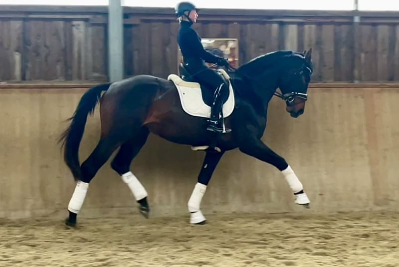 Hannoveraner Hengst – Vielversprechender Nachwuchs für die Dressur Zum Verkauf steht ein beeindruckender Dunkelbrauner Hannoveraner Hengst, geboren im Jahr 2022. Mit einem Stockmaß von 176 cm vereint er elegante Größe und hervorragende Proportionen, die ihn zu einem idealen Partner für ambitionierte Dressurreiter machen. Dieser junge Hengst überzeugt durch seine vielversprechende Grundausbildung und sein ausgeprägtes Talent für die Dressur. Er ist gut geritten, zeigt eine aufgeschlossene und freundliche Charakteristik und besitzt die vollen Qualitäten in Bezug auf Beweglichkeit, Elastizität und hat dabei ein Interieur von 10. Seine vielversprechende Abstammung und sein aufstrebendes Potenzial machen ihn zu einer interessanten Investition für Zucht und Sport. Der Hengst ist bereits in der Grundausbildung gefestigt und bereit, den nächsten Schritt in seine sportliche Karriere zu gehen. Sein Vollbruder war 2024 OLD-Elitefohlen und seine Vollschwester 2025 Siegerfohlen der Qualifikation fürs deutsche Fohlenchampionat in Lienen mit Noten bis 10,0. Eine aktuelle AKU mit Röntgenbilder inkl. Rücken liegt zur Einsicht vor! Beim Bewegen zeigt er gelegentlich eine leichte Schweifhaltung nach rechts. Dies wurde tierärztlich sowie physiotherapeutisch abgeklärt und ist laut Befund ohne gesundheitliche Bedeutung (rein optischer Befund). Bei Interesse freuen wir uns auf Ihre Kontaktaufnahme, um weitere Details zu besprechen oder einen Besichtigungstermin zu vereinbaren.