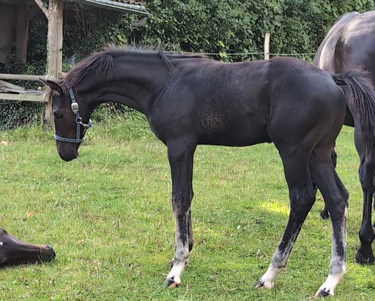 Am 10. Mai ist er geboren und weiß sich schon zu präsentieren. Nicht nur sehr hübsch, sondern auch Menschenfreundlich und verschmust .Der Hengst steht auf korrektem Fundament ohne Fehlstellungen. Die Mutter ist Staatsprämienstute , der Vater hat auch allerbeste Dressurabstammung und war Prämienhengst .Erfolgreicher Mutterstamm bis S- Dressur.