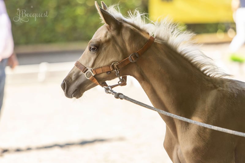 Quinario B Qandide x Bonifatius x Londonderry Zum Verkauf steht unser Hengstfohlen Quinario aus diesem Jahr. Er wurde am 25.03.2025 geboren. Aufgrund seines Vaters, ist er ein sehr schicker heller Palomino. Sehr Lange Beine, einen schwungvollen Galopp, herausragenden Trab und starken Schritt. Auf der Fohlenschau wurde er deswegen als Reservesieger prämiert. Quinario ist sehr selbstständig und absolut unerschrocken. Bierbikes an der Straße, tief fahrende Heißluftballons, Feuerwerk und Musikkapellen tangieren ihn nicht. Ab der ersten Woche üben wir das Fohlen ABC, somit sind alle unsere Fohlen bei Abgabe halfterführig, verladefromm, kennen den Schmied und Tierarzt. Sie lernt alle täglichen Geräusche auf dem Hof kennen und kennen Hunde. Unsere Stuten mit Fohlen laufen im Sommer zusammen auf 2,5ha Weide, Tag und Nacht. Im Herbst und Winter sind sie 10-12h tagsüber draußen mit 24/7 Heu und nachts in großen Geburtsställen. Somit wachsen die Fohlen sehr schön auf und gewöhnen sich direkt an alle Wetterarten und Temperaturen. Er ist das fünfte Fohlen seiner Mutter. Beautiful Mind 8 ist eine sehr elegante schöne Staatsprämien Anwärterin aus dem Stutenstamm der Juggema. Sie ist dunkelbraun und ca 168cm groß. Ihr erstes Fohlen ein Rapphengst von Goldberg wurde direkt nach der Geburt verkauft. Ihr zweites Fohlen ein Rapphengst von Despacito ging über die Elite Hannoveraner Auktion nach Spanien. Ihr drittes Fohlen aus Franziskus, wurde prämiert und befindet sich aktuell in der Ausbildung seiner Reiterin. Er kann über Instagram verfolgt werden. Und ihr viertes Fohlen Felisa, ist bei uns und kann sich gerne angeschaut werden. Beauty ist wahnsinnig verschmust und gutmütig und vererbt diesen tollen intelligenten Typ immer an ihre Fohlen weiter. Beauty ist wie alle unsere Stuten getestet und WFFS negativ. Stutenstamm: Grafitti v. Graf Top (DRE: S**-erfolgr. mit Elisabeth Beneke-Backhaus); Saphir v. Sunlight xx (VS: int. CIC***-erfolgr. mit Gerd-Olaf Neuberg); Dorian Gray v. Don Picardi (VA 2009: 47.000 €, DRE: S*-erfolgr. mit Katrin Alkenings); gek. Hengst Desperados FRH v. De Niro (VA 2003: 104.000 €, Einzelbronze u. Teamgold Olympische Spiele Dressur 2016 mit Kristina Bröring-Sprehe); Don Diego v. Don Frederico (VA 2007, DRE: int. GP-erfolgr./Bronzemed. EM U25 2016 mit Juan Pablo Matute Guimon); gek. Hengst Don Noblesse v. Dancier (DRE: int. GP-erfolgr. mit Susan Pape); Weneziano v. Wolkenstein II (DRE: int. GP-erfolgr. mit Martina Steisslinger) Akrobat v. Acord II (SPR: int. 1,40 m- erfolgr. mit Philipp Ulrich). Der Vater Qandide ist ein schöner Cremello Hengst, der seine ruhige gelassene Art an seine Fohlen weiter gibt. Wir hatten bereits ein Fohlen von ihm aus einer anderen Stute und können ganz klare Parallelen ziehen. In ihrer gelassenen und nichts aus der Ruhe bringenden Art sind sie sich sehr ähnlich. Qandide ist ECVM und WFFS frei. Mehr Informationen zu ihm unter https://www.hengste-rohmann.de/qandide Uns ist eine gute Aufzucht und Transparenz sehr wichtig, daher kann man einen täglichen Einblick in unsere Zucht bei Instagram bekommen. Q kann aber natürlich auch gerne bei uns besucht und angeschaut werden. Ein aktuelles Bewegungsvideo kann gemacht werden und wird gerne auf Anfrage verschickt. Auf den letzten Bildern ist die Mutter sowie bisherige Nachzucht zu sehen. Er steht noch bei uns, wird jedoch bald in eine erstklassige Aufzucht umziehen. Der Platz könnte mit übernommen werden bei Bedarf. Bei Interesse oder Fragen können Sie uns gerne per Nachricht, Whats App oder Telefon kontaktieren. Telefon: +49 152 53765924
