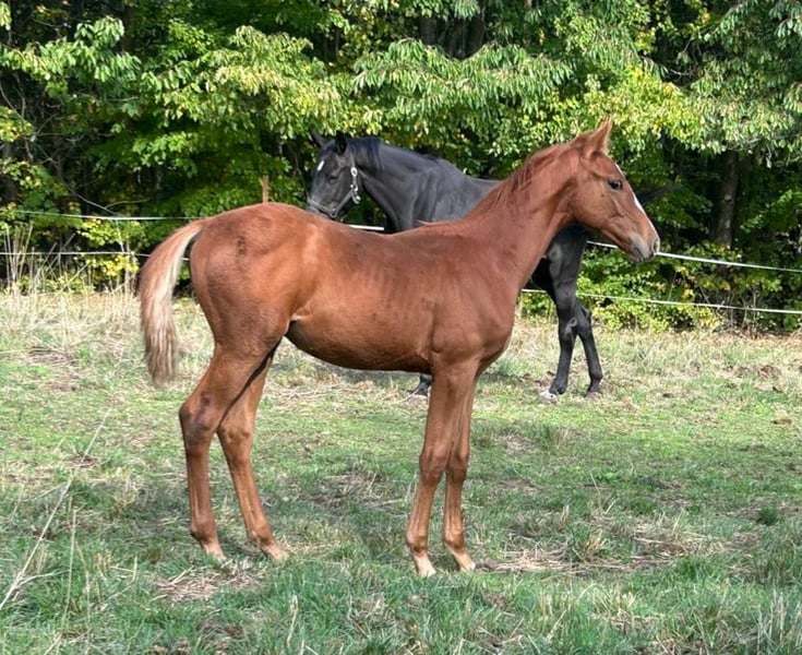 **Sales Advertisement: Hanoverian Stallion** For sale is a promising Hanoverian stallion, born in 2025. With an impressive height of 172 cm and his striking chestnut color, he attracts all attention. This talented stallion is ideal for dressage and already shows promising approaches in training. His friendly nature and high willingness to learn make him a pleasant partner for riders of all experience levels. He is well-socialized and familiar with handling other horses. The stallion is healthy and regularly dewormed. The sire Londontime was active up to the heavy class in dressage and has produced numerous S-level offspring. The dam Saphira, by Bundeschampion Samba Hit I, comes from the successful Hanoverian mare line of Anfertigung, from which, among others, the Bundeschampion Va' Pensiero by Vitalis originates. If you are looking for an elegant and powerful horse with the potential to succeed in dressage, then this Hanoverian stallion is just right for you! If you are interested or have any further questions, please feel free to contact me.