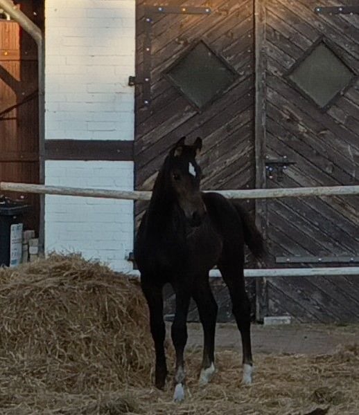 Eine Offerte in die Zukunft Unser Hengstfohlen von Khedira aus unserer St.Pr.St von Avagon vereint das Beste seiner Eltern. So zeigt er sich hoch elastisch , dynamisch und sehr korrekt. Dazu vereint er ein tolles Interieur mit einem korrekten Extereur. Seine Mutter erfolgreich in der Vielseitigkeit, bis zu ihren Unfall , auch von Jugendlichen vorgestellt . Sie hat eine deutliche Doppelveranlagung und eine Prüfung absolviert , die keine Wünsche offen lässt. Selbst bei uns geboren, kann weitere Nachzucht bei uns zu besichtigen werden. International erfolgreicher Stamm. Ihre Nachzicht bisher in familiären Umfeld verkauft, daher ehr ländlichen unterwegs Aus dem Stamm zur Zeit aktuell Cera Blue B beim Bundeschampionat erfolgreich , ebenso stammt z.b Grey Top aus dem Stamm u.v.a. mehr Das Landgestüt Celle schreibt über Khedira Kannan – Caretano Z – Darco – Dieses Pedigree liest sich wahrlich wie eine Platzierungsliste eines Großen Preises. Vater Kannan rangiert aktuell unter den Top-Ten der WBFSH-Liste und war selbst international hocherfolgreich unter seinem französischem Reiter Michel Hécart. Auf dem internationalen Parkett zuhause war auch Großvater Caretano Z mit seinem Reiter Jos Lansink. Und in den Top-Ten der Olympischen Spiele von Barcelona 1992 ist kein geringerer zu finden, als Urgroßvater Darco mit Ludo Philippaerts. Doch nicht nur die Väter überzeugen in dem Pedigree von Khedira: Großmutter Dolce Vita St. Ghyvan Z brachte, mit Quidam de Revel, den unter Miguel Viana in S*** erfolgreichen Quidarco und Urgroßmutter Narouscha M (v. Cantus) mit Cheers Cassini den in S-Springen erfolgreichen Three Cheers. Abgerundet wird dieses Pedigree durch den Stutenstamm der Wilma und unter anderem durch Urano v. Elmshorn, der mit John Paul Sheffield Erfolge in CIC***-Prüfungen feierte. Gleich bei seinem ersten Turnierstart konnte Khedira unter Sven Rudolph mit einem Doppelsieg glänzen! Die erste Springpferde A* gewann das Paar mit einer 8,7 und die Springpferde A** mit einer 8,4. Im Laufe der Zeit kamen zahlreiche Siege und Platzierungen bis zur Springpferdeprüfung der Klasse M hinzu. In der Saison 2021 konnte Khedira mit Platzierungen in M** glänzen. 2022 konnte Khedira zahlreiche Siege und Platzierungen in der Klasse S erringen und krönte die erfolgreiche Saison durch eine Platzierung im Finale des Bundeschampionats der 7-jährigen Springpferde. Darüber hinaus konnte er sich im internationalen Youngsterfinale in Opglabbeek (BEL) an 3. Stelle platzieren. An diese großartige Saison konnte Khedira 2023 anknüpfen. Unter Sven Rudolph konnte der Hengst mit einer beachtlichen Anzahl von Platzierungen in der schweren Klasse mehrfach zeigen was in ihm steckt und was für die Zukunft zu erwarten ist. Hier reift ein moderner Sportler heran, der an Vermögen kaum zu überbieten ist.