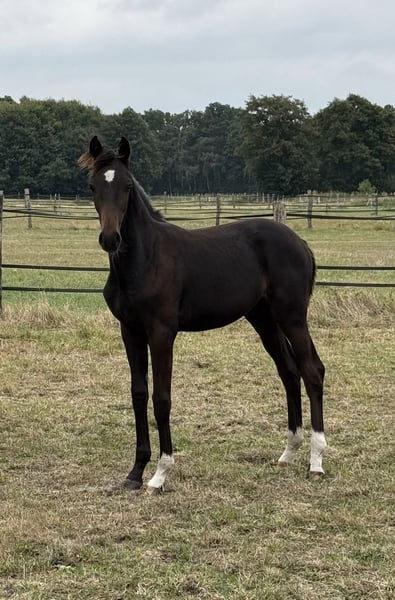 This young talent impresses from day one with his people-oriented nature, a clear mind, and three outstanding basic gaits. He presents himself well in daily handling, curious and open-minded – a foal that captivates with his charisma and quality. His pedigree combines modern performance potential with proven lines – the best prerequisites for a successful career in dressage or as a versatile riding horse.