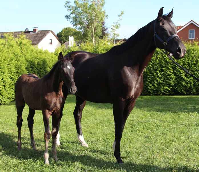 Zum Verkauf steht ein schickes Hengstfohlen von Leclerc aus einer leistungsgeprüften Le Vivaldi x De Niro-Staatsprämienstute. Die Mutter entstammt einem sporterfolgreichen Stutenstamm, wurde bis Klasse L gefördert und absolvierte eine sehr gute SLP. Dieses typvolle Rappfohlen überzeugt nicht nur durch seine edle Erscheinung, sondern vor allem durch sein außergewöhnlich menschenbezogenes, freundliches Wesen. Er zeigt sich von Anfang an neugierig, aufgeschlossen und unkompliziert – ein echtes Verlasspferd in spe. Neben seinem hervorragenden Interieur überzeugt er mit einem korrekten, typvollen Exterieur und drei sehr guten Grundgangarten. Besonders hervorzuheben sind seine natürliche Leichtfüßigkeit, das aktive Hinterbein sowie ein raumgreifender, schreitender Schritt. Sein korrektes Fundament, seine Bewegungsqualität sowie das hervorragende Interieur machen ihn zu einem vielversprechenden Nachwuchspferd – mit Potenzial für eine erfolgreiche sportliche Karriere und ganz viel Freude! Ein Platz zur Aufzucht wäre vorhanden.