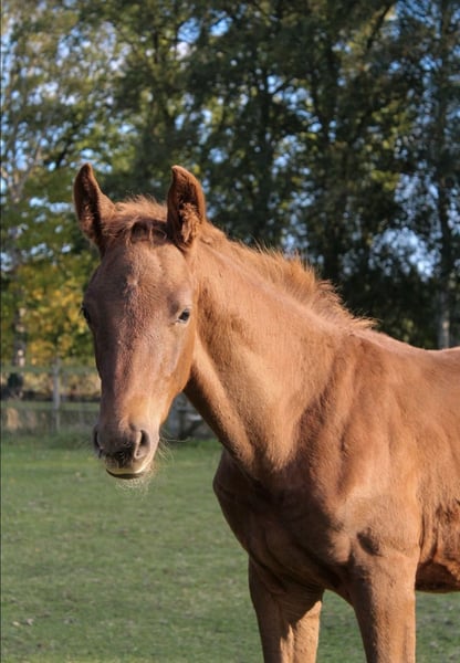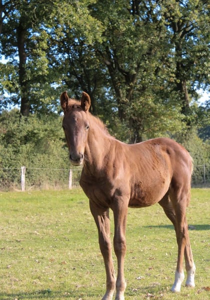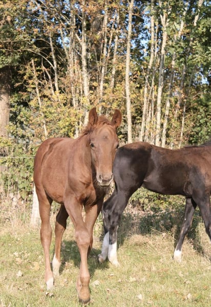 For sale is the promising Hanoverian stallion Keep Cool vom Leisch, born on June 15, 2025. This elegant chestnut impresses with his modern silhouette, energetic movement mechanics, and a balanced character. His sire, Kjento (Negro x Jazz), is among the most sought-after stallions in the dressage scene today. As the winner of the KWPN stallion performance test and world champion of young dressage horses, he impresses with top-class movement potential, rideability, and charisma – traits that he reliably passes on to his offspring. His dam, Donna (Dagostini x Rotspon), brings not only athletic performance but also breeding excellence: She is a premium mare with a successfully completed SLP and has already produced auction foals. Her offspring consistently impress – including champion and reserve champion foals, as well as gold premium descendants at foal shows. Donna herself excels in rideability, has a balanced temperament, and is the epitome of a modern, sport-oriented breeding mare. Keep Cool vom Leisch combines the best from two proven lines and possesses all the qualities for a future in dressage or high-quality breeding. Keep Cool is raised in a herd environment, is well-socialized, curious, people-oriented, and halter-trained for his age. He is microchipped, regularly dewormed, and will be registered with the Hanoverian Association. Current videos are available and can be sent upon request. Feel free to visit us to meet Keep Cool in person.