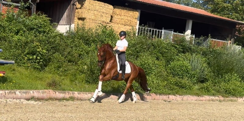 Zum Verkauf steht ein kompakter 7 jähriger Hannoveranerwallach von Finnigan aus einer Laurie’s Crusador Mutter. Er befindet sich auf dem Weg zu L Dressur, ist brav im Umgang und beim Reiten. Aufgrund seiner Allergie ist dieser liebe Wallach weit unter Wert abzugeben. Bei entsprechender Haltung und Fütterung hat er keinerlei Einschränkungen beim Reiten. Videos auf Anfrage. Bei ernsthaftem Interesse gerne eine WhatsApp Nachricht schicken.