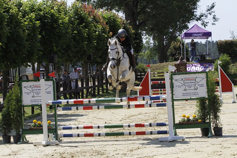Der Wallach ist bei uns geboren, wohl behütet aufgezogen und ausgebildet. Fünfjährig ging er erste Springpfefdeprüfungen, wurde dann weiter gefördert und wird seit er 7 jährig ist regelmäßig auf Turnieren vorgestellt. Er ist sehr rittig, mit viel Vermögen, sehr intelligent, sucht die Sprünge und ist außerdem sehr wendig. Vom Typ her eignet er sich sehr gut als Damen-, Junioren- oder Umsteigepferd vom Pony. Er verfügt über viel Parcourserfahrung und verzeiht trotz seiner Vorsicht auch mal einen Reiterfehler. Im Umgang ist das Pferd ausgesprochen verschmust und einfach zu handeln.