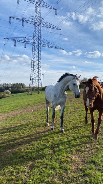 Im Auftrag: „Schweren Herzens muss ich mich leider von meinem treuen Freund, aufgrund meines anstehendes Studiums im Ausland trennen. Deshalb steht der 11-jährige Holsteiner Wallach Questo Carino, liebevoll Carli gennant zum Verkauf. Carli ist eines der gelassensten Riesenbabys die ich kenne. Er wurde erst mit 6 Jahren angeritten und konnte sich so ganz in Ruhe entwickeln. Carli ist sehr sozial im Umgang mit anderen Pferden oder Menschen. Sei es das anspruchsvolle Springtraining, das anstrengende Turnierwochenende oder der ganz entspannte Ausritt am Halfter oder Hackamore, Carli ist immer mit voller Begeisterung dabei. Von unseren ersten gemeinsamen E-Springen bis hin zum ersten gemeinsamen L-Springen haben wir viel miteinander erlebt. Carli kennt Anhänger fahren, Sprinter und auch Lkw und hat dabei auch noch nie in irgendeiner Hinsicht Probleme gemacht. Er kennt es mit einem Pferd zu fahren oder auch mit mehren, sowie auch ganz alleine. Schmied oder Tierarzt ist auch absolut kein Problem. Vorstellen für Carli kann ich mir jeden liebevollen, verantwortungsvollen neuen Besitzer. Vom Anfänger bis zum reinen Freizeitreiter oder der ambitionierte Turnierreiter. Bei weiteren Fragen oder für weitere Informationen gerne melden insta: maurice_scch“ Am Standort (Gestüt Hohensonne) stehen weitere brave Sportpartner zur Verfügung (6-jährige Stute von Edward, 5-jähriger Wallach von Diacontinus)