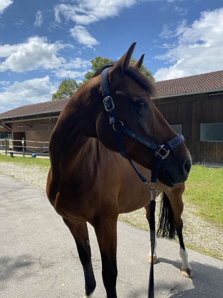 Verkaufe Holsteiner Wallach – Perfekter Freizeitpartner Zum Verkauf steht ein wunderschöner brauner Holsteiner Wallach, geboren im Jahr 2012. Mit einem Stockmaß von 168 cm bietet er die ideale Größe für Jedermann. Diese wahnsinnig freundliche Wallach überzeugt durch sein angenehmes Wesen und seine Bereitschaft, Alles richtig zu machen. Dressurmäßig ist er sehr gut ausgebildet, kennt Seitwärtsgänge, Wechsel uvm. (kennt auch Ausbinder und lässt sich von Kindern reiten), beim Springen besitzt er sehr viel Go und braucht einen angstfreien Reiter. Er ist der ideale Partner für einen Freizeitreiter ohne Turnierambitionen. Da er sich leider in Turniersituationen sehr stresst. Auswärtstraining, Lehrgänge etc. sind ohne Probleme möglich - ihn stresst leider die Turniersitation. Der Pferd ist gesund, regelmäßig geimpft und entwurmt. Eine AKU (inkl. Röntgenbilder) aus 2023 ohne Mängel ist vorhanden. Momentan ist er Barhuf und steht im Offenstall, kennt aber auch Box. - Wünsche mir viel Weidegang mit anderen Pferden für ihn. Platz vor Preis Bei Interesse und für weitere Informationen stehe ich gerne zur Verfügung. Besichtigung und Probereiten nach Vereinbarung möglich.