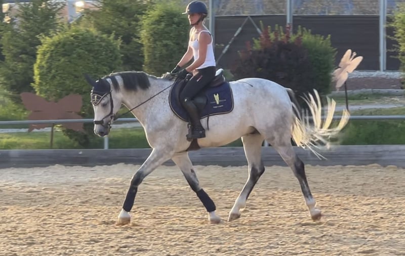 Lancer is a horse with a truly special character – affectionate, human-oriented, and always up for a little fun. He forms a close bond with his handler and places great trust in his rider. Under saddle, he is always well-behaved and cooperative, though he can sometimes test boundaries, so he is looking for a confident and experienced rider to be by his side! In the arena, however, he shows his big heart and talent. He wants to do everything right and will fight for his rider! Lancer loves spending plenty of time outdoors. Currently, he is housed in a lovely paddock box with direct access to his own pasture – movement and freedom are very important to him. Due to personal health reasons, we unfortunately have to part with him. He is being offered at a significantly reduced price, as our top priority is to find a loving and suitable home for him. Please only contact us if you are genuinely interested. To prevent riding tourism, we kindly ask for a €30 contribution for trial riding. Further information or videos are available via phone or WhatsApp.