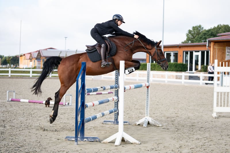 In the course over the colorful poles, Felix feels at home. He thrives in this environment and is full of motivation. In handling, Felix is always composed; nothing can easily unsettle him. He loads onto the trailer without any issues, behaves well for the farrier and veterinarian, and educates our young ones with friendly consistency in the open stable. Felix is familiar with life in a herd in an open stable, as well as box housing. For a relaxed ride at a walk or a sporty gallop through the woods, Felix is easily persuaded. But most of all, he loves to jump with fresh forwardness, which must be allowed, and with a scope and speed that makes hearts race. Those who want to be at the front in a jump-off have found the perfect partner in crime with Felix. If you would like to meet Felix in person or learn more, feel free to send a WhatsApp or SMS in advance!